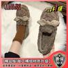Mao Mao Doudou Shoes Women's New Autumn and Winter Outer Wear Velvet Flat-bottomed Versatile Bow Cotton Shoes Outer Wear Lazy Shoes