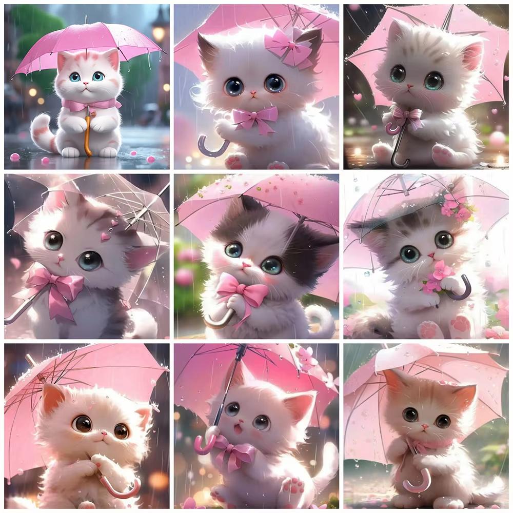 New Arrivals Diamond Painting Animal Cat 5d Diy Full Drill Mosaic Umbrella Art Gift Home Decoration Craft Kit