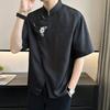 Summer Short-sleeved Shirt Men Ice Silk Stand Collar New Fashion New Chinese Top