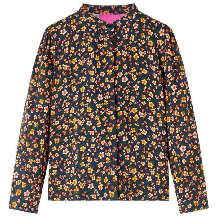 Children's Shirt with Navy Blue Floral Print Band Collar 5 Sizes Available