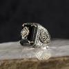 Vintage Turkish Signet Ring for Men Women Antique Copper Color Carved Eagle Ring Inlaid Green Zircon Locomotive Punk Rings