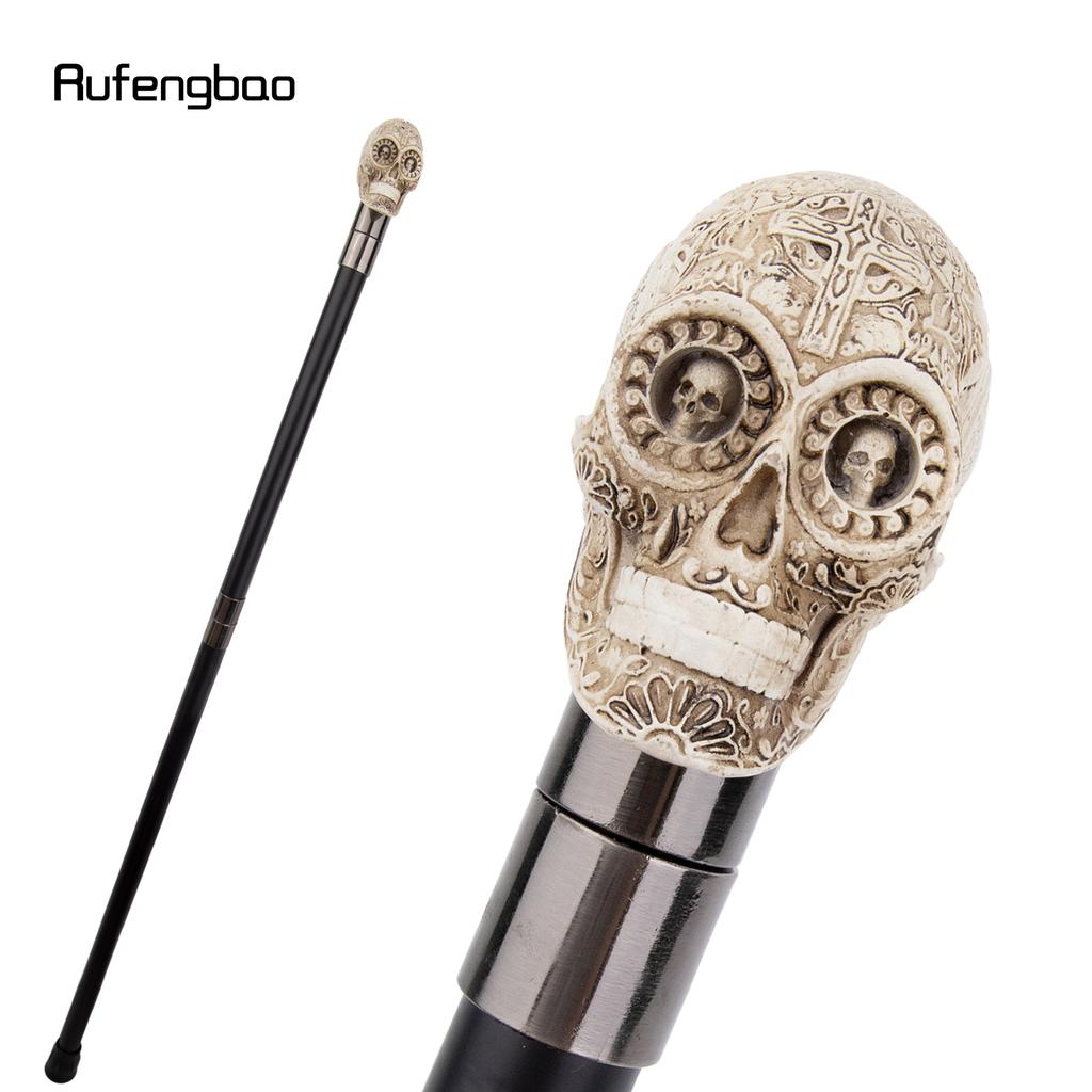 Yellow Resin Skull Head Walking Cane Fashion Decorative Steel Stick Gentleman Elegant Cosplay Cane Knob Crosier 92cm