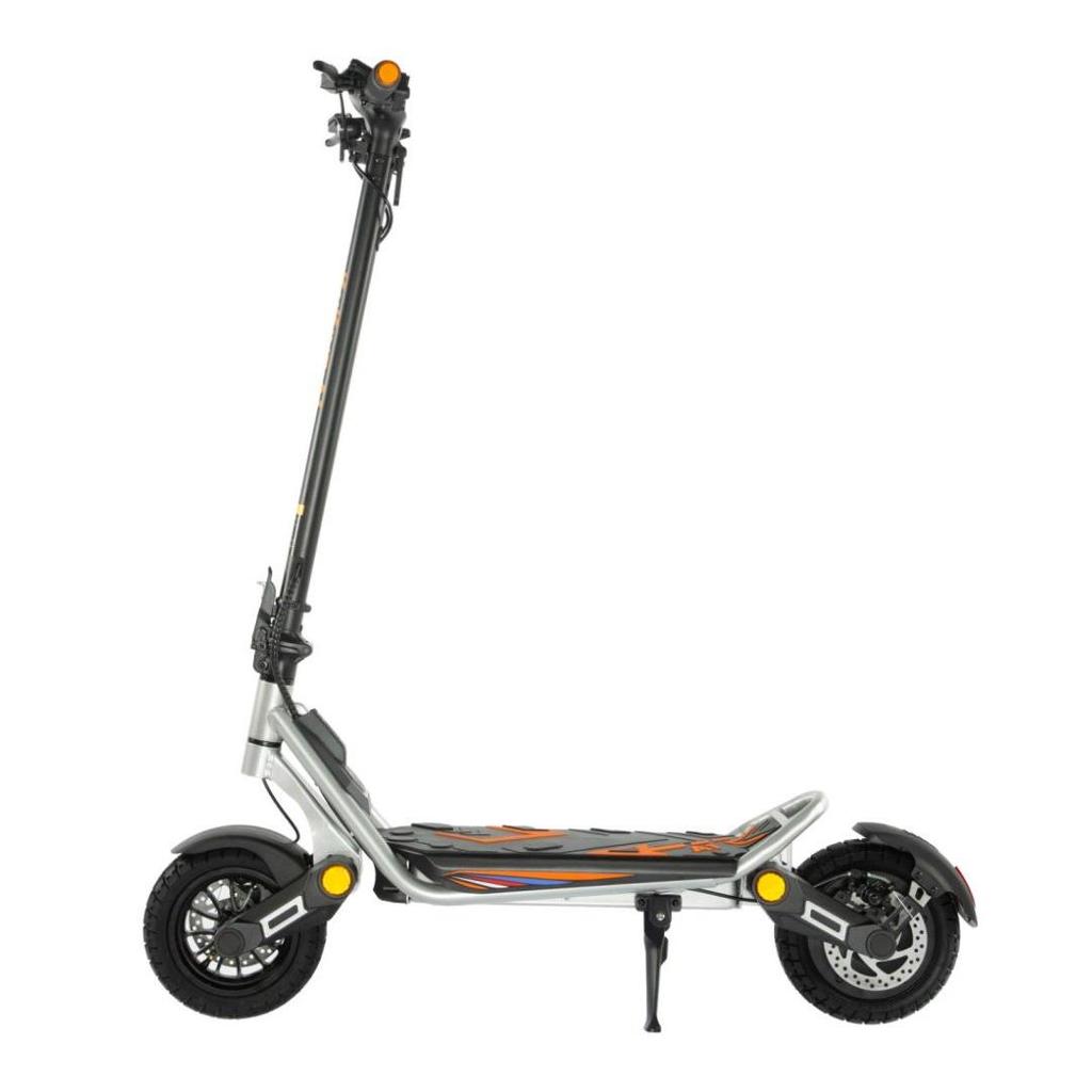 The whole scooter is designed with an integrated silver iron pipe, with tough lines and a full texture, giving it a sense of technology while retaining a trendy style.The continuous shape from the folding point to the tail wing breaks the traditional splicing structure and presents an integrated and smooth visual tension.