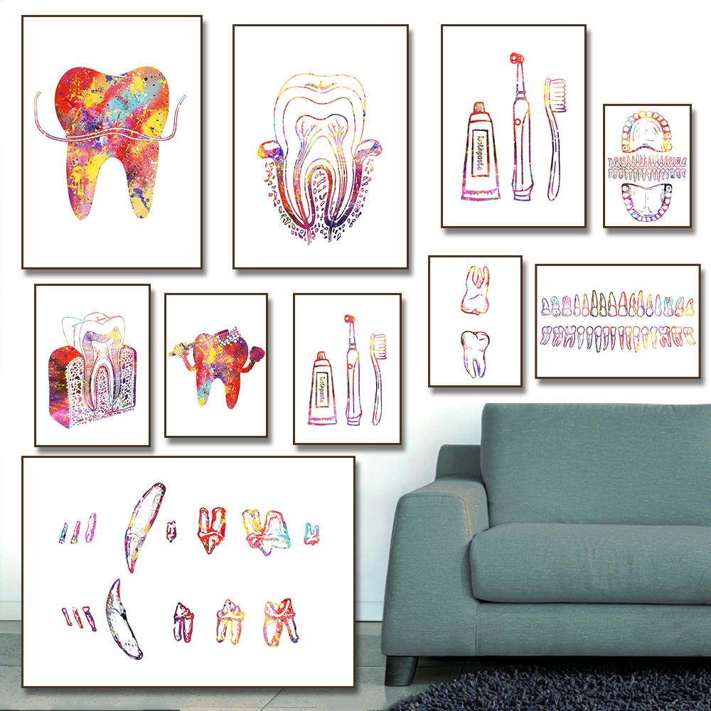 Watercolor Teeth Implant Canvas Painting Tooth Fairy Dental Art Poster Dentist Anatomy Print Wall Pictures Hospital Clinic Decor
