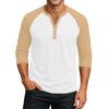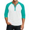 Men's Button-Down Contrast Raglan 3/4 Sleeve Top