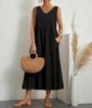 Fashionable Summer Temperament Women's Solid Color Cotton Linen Loose V-neck Dress