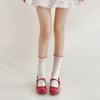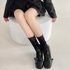 Black Fungus Lace Pile Socks for Women, Summer Hollowed-out Mid-calf Socks, Sweet Lace Lolita Red Lace Thigh-high Socks