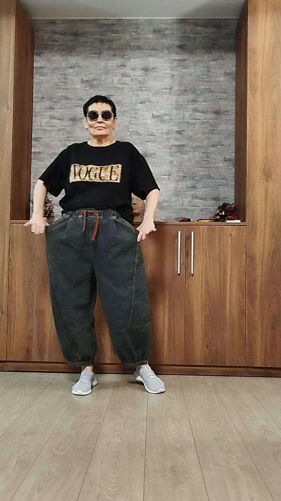 Retro Plus Size Distressed Denim Jeans Women's Autumn Elastic Waist Slimming Harem Pants Loose Versatile Nine-Point Pants