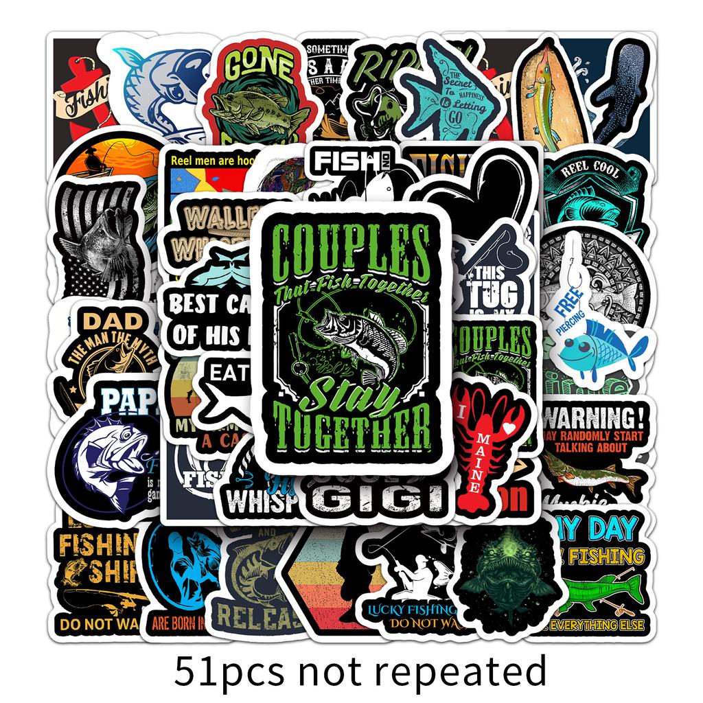 51 Photos Fishing and Sea Fishing Series Cartoon Creative Suitcase Laptop Car Stickers Waterproof Decorative Stickers