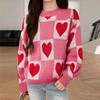 VONDA Women Autumn Round Neck Long Sleeve Plaid Heart Print Pullover Sweaters