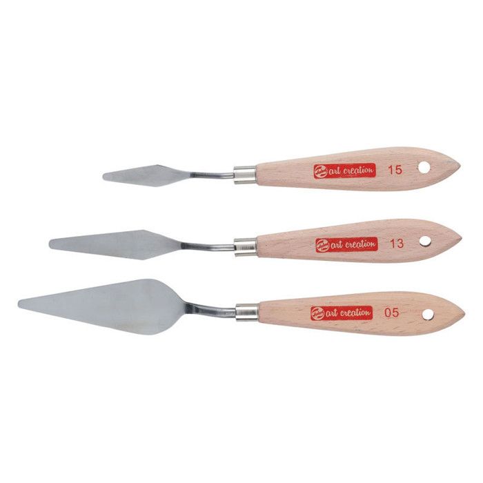 Couteaux à peindre - Acrylique et huile - 3 tailles et formes - Métal - Manche bois