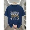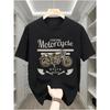 Men's T-Shirt, Casual Crew Neck Tee with Motorcycle Graphic, Geometric Pattern, Short Sleeve Knit Fabric Tops