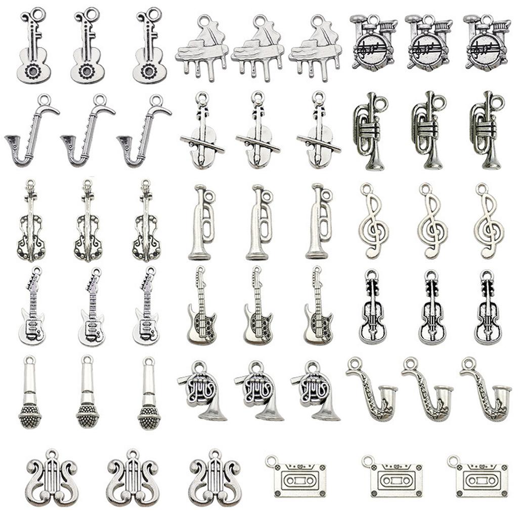 51 Pcs/Set Musical Instrument Pendant Retro Violin Pendant Music Charm Handmade Jewellery Accessories for Music Lovers