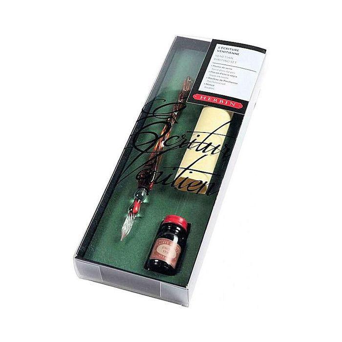 Set de calligraphie - herbin - 28300t - l'écriture vénitienne - noir - plume