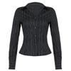 Slim Fit Slim Trendy V-neck Top Slim Black Striped Shirt for Women