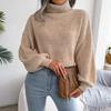 Women Loose Knit Turtleneck Sweater Long Sleeve All Match Fall Winter Mixed Color Lantern S-L