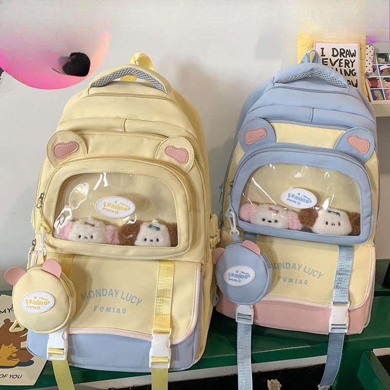 Color: Black shoulder bag, pink shoulder bag, blue shoulder bag, yellow shoulder bag, purple shoulder bag, single bag, black shoulder bag, brown ear white ball + pink ear white ball + red nose bear hanging decoration, pink shoulder strap brown ear white ball + pink ear white ball + red nose bear hanging decoration, blue shoulder strap brown ear white ball + pink ear white ball + red nose bear hanging decoration, yellow shoulder strap brown ear white ball + pink ear white ball + red nose bear hanging decoration, purple shoulder strap brown ear white ball + pink ear white ball + red nose bear hanging decoration, black backpack single bag, pink backpack single bag, blue backpack single bag, yellow backpack single bag, purple backpack single bag, black shoulder strap brown ear white ball + pink ear white ball + coin wallet hanging decoration, pink shoulder With brown ear white ball + pink ear white ball + coin wallet hanging decoration, blue shoulder straps with brown ear white ball + pink ear white ball + coin wallet hanging decoration, yellow shoulder straps with brown ear white ball + pink ear white ball + coin wallet hanging decoration, purple shoulder straps with brown ear white ball + pink ear white ball + coin wallet hanging decoration, black two-piece set with 2 brown ear white ball 2 pink ear white ball + coin wallet + red nose bear hanging decoration, pink two-piece set with 2 brown ear white ball 2 pink ear white ball + coin wallet + red nose bear hanging decoration, blue two-piece set with 2 brown ear white ball 2 pink ear white ball + coin wallet + red nose bear hanging decoration