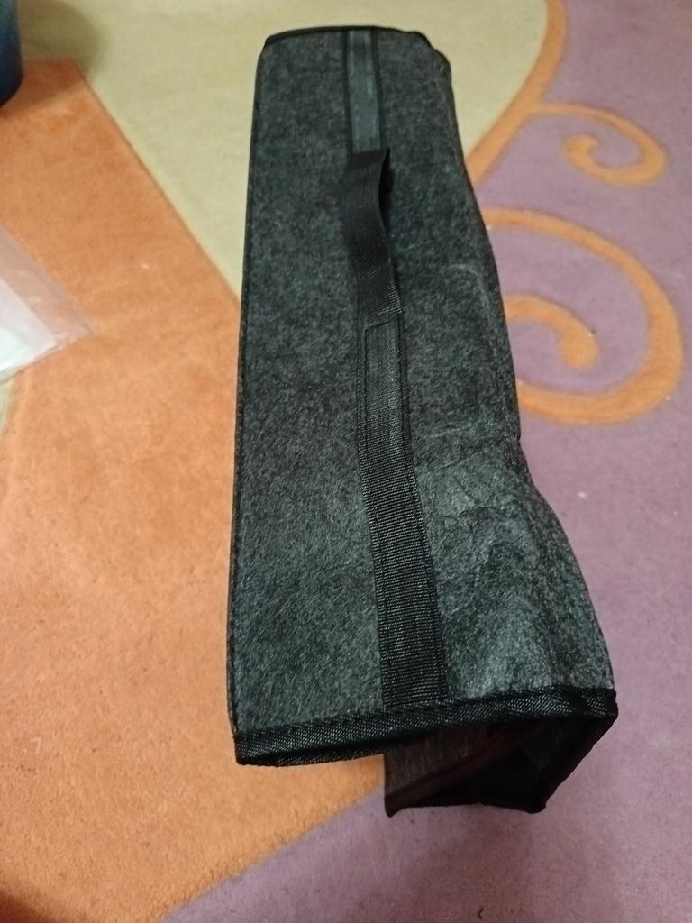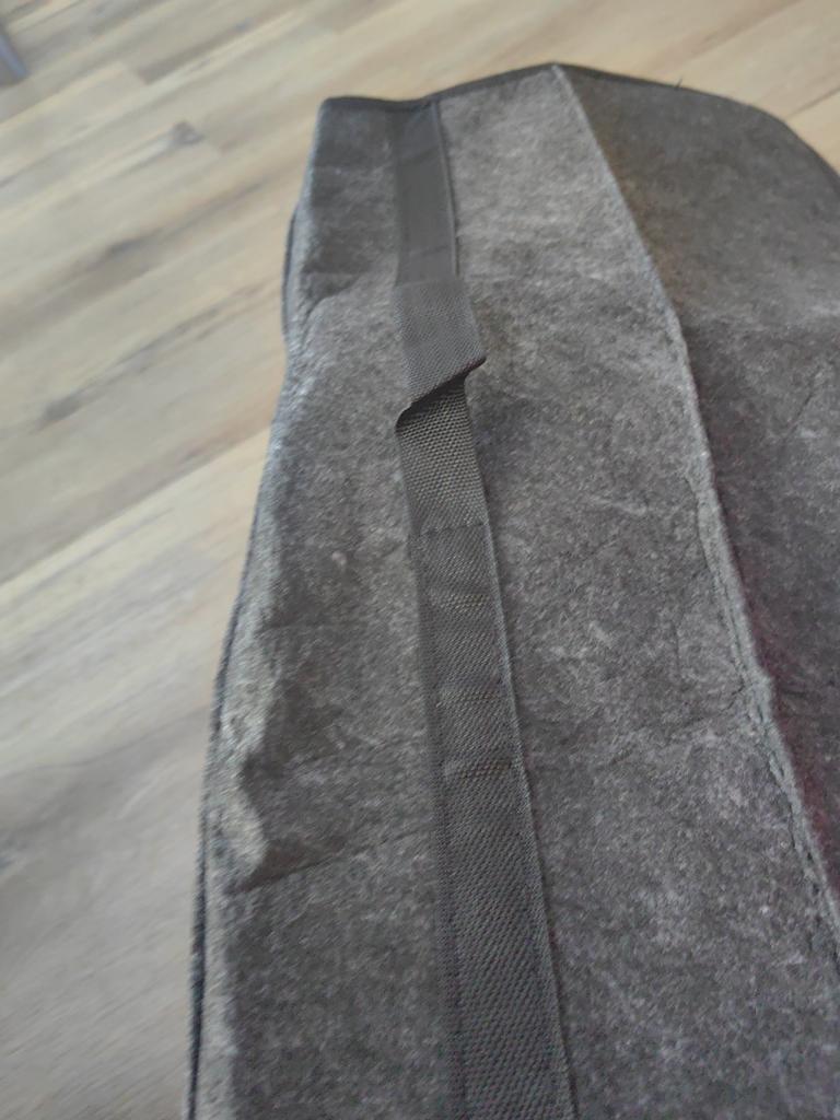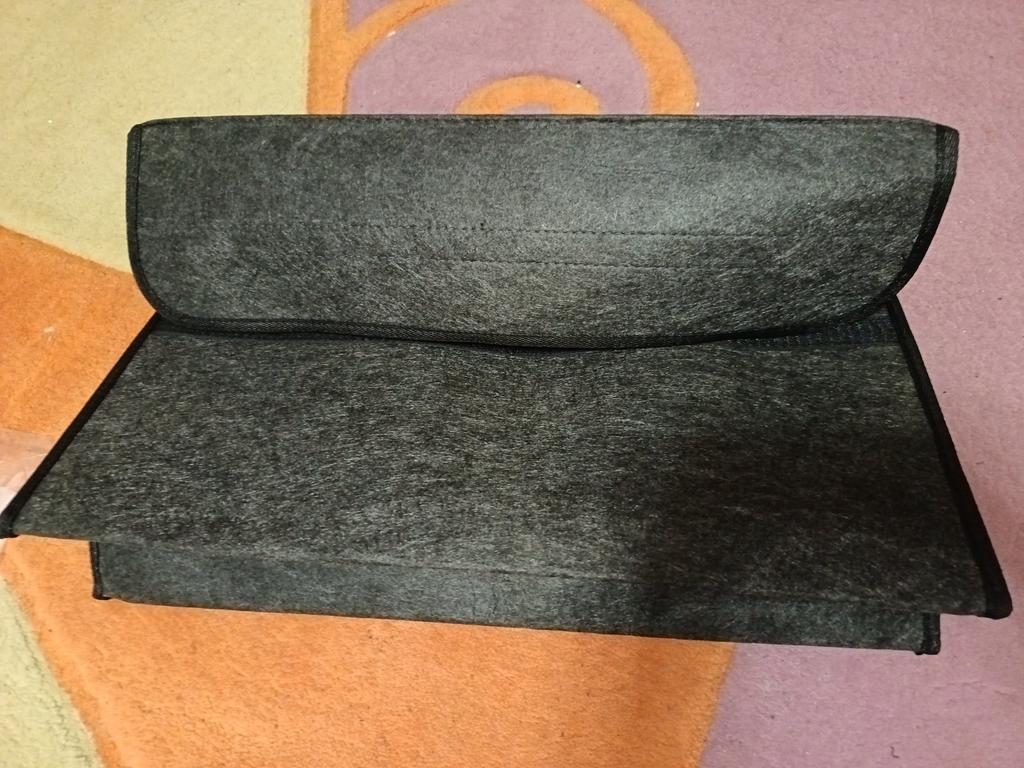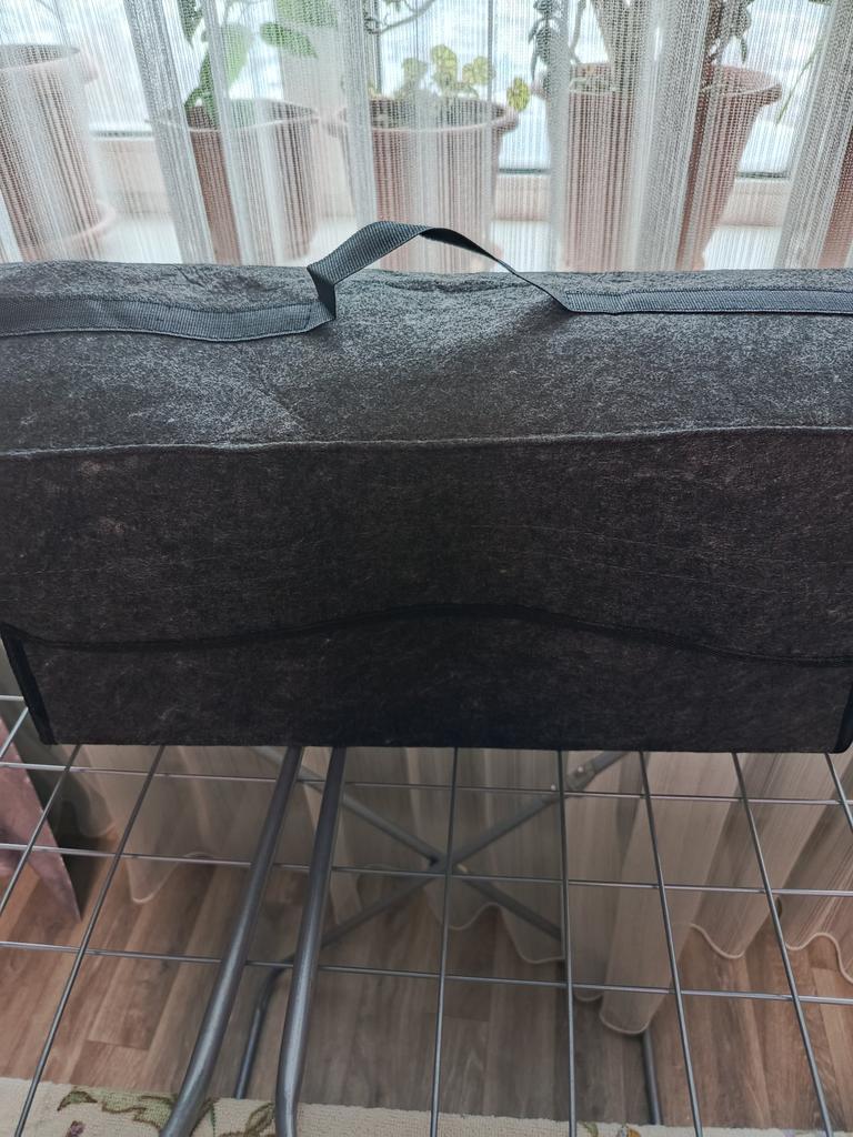 Thin artificial felt that can only hold its shape if it has never been folded, folded in such a way that it is completely unusable due to creases. It would have been possible to put cardboard or plastic underneath it and not fold it at all, it would have been possible to fold it along the seams and roll it up, yes, a lot of things could have been invented. But no, it was simply folded 4 times and stuffed into a small bag. It traveled for a month with these creases, and now it's only good for the trash.