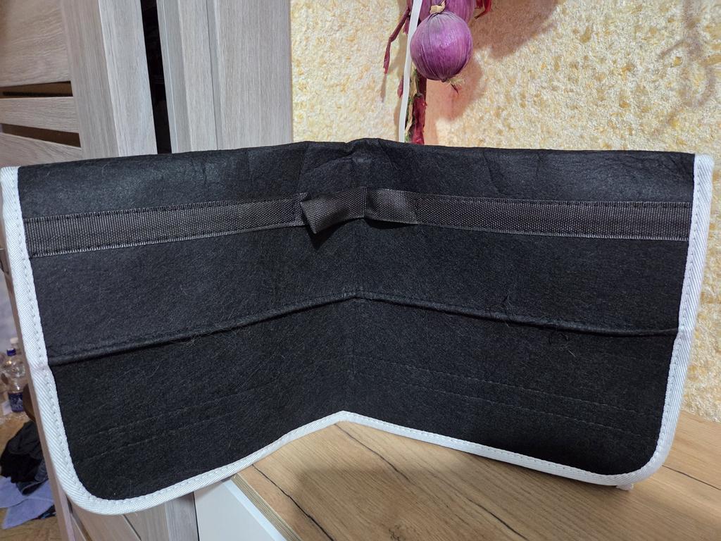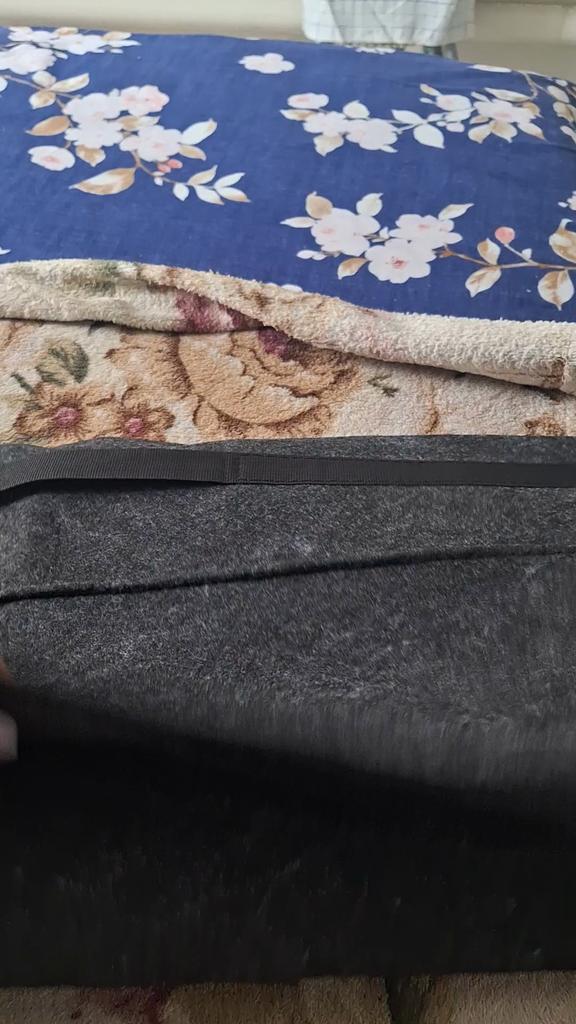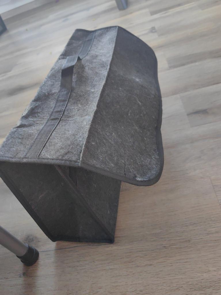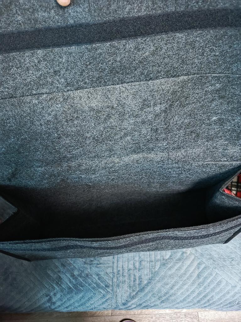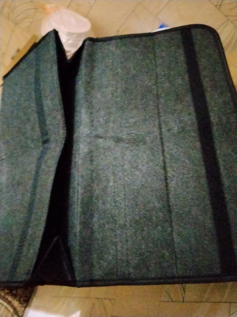 Thin artificial felt that can only hold its shape if it has never been folded, folded in such a way that it is completely unusable due to creases. It would have been possible to put cardboard or plastic underneath it and not fold it at all, it would have been possible to fold it along the seams and roll it up, yes, a lot of things could have been invented. But no, it was simply folded 4 times and stuffed into a small bag. It traveled for a month with these creases, and now it's only good for the trash.