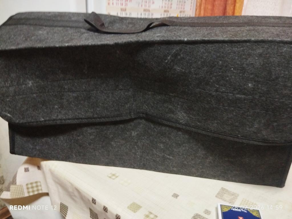 Durable "suitcase". Order in the trunk is guaranteed. Holds its shape.