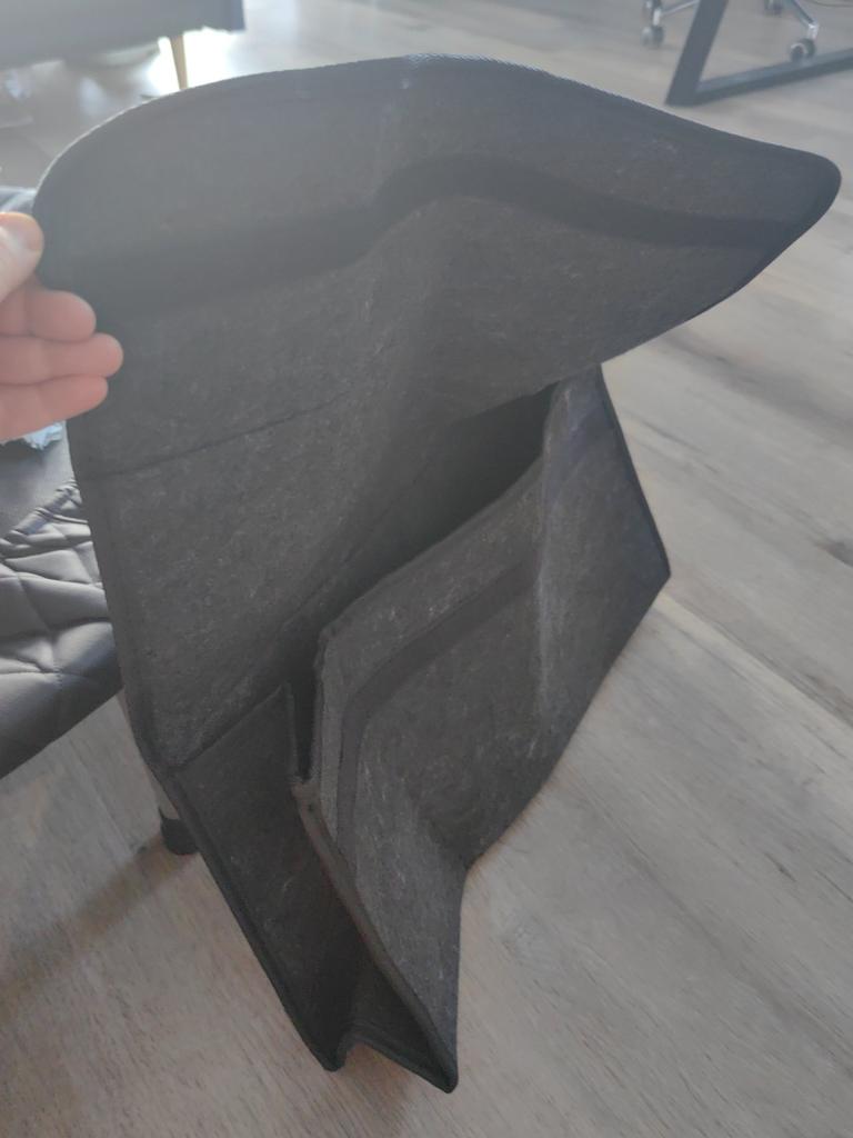 The organizer is thin, made of some kind of pressed velour fabric, soft, probably will fray completely with use, I wish it were stronger, thank you everyone. I thought I ordered grey, but black arrived.