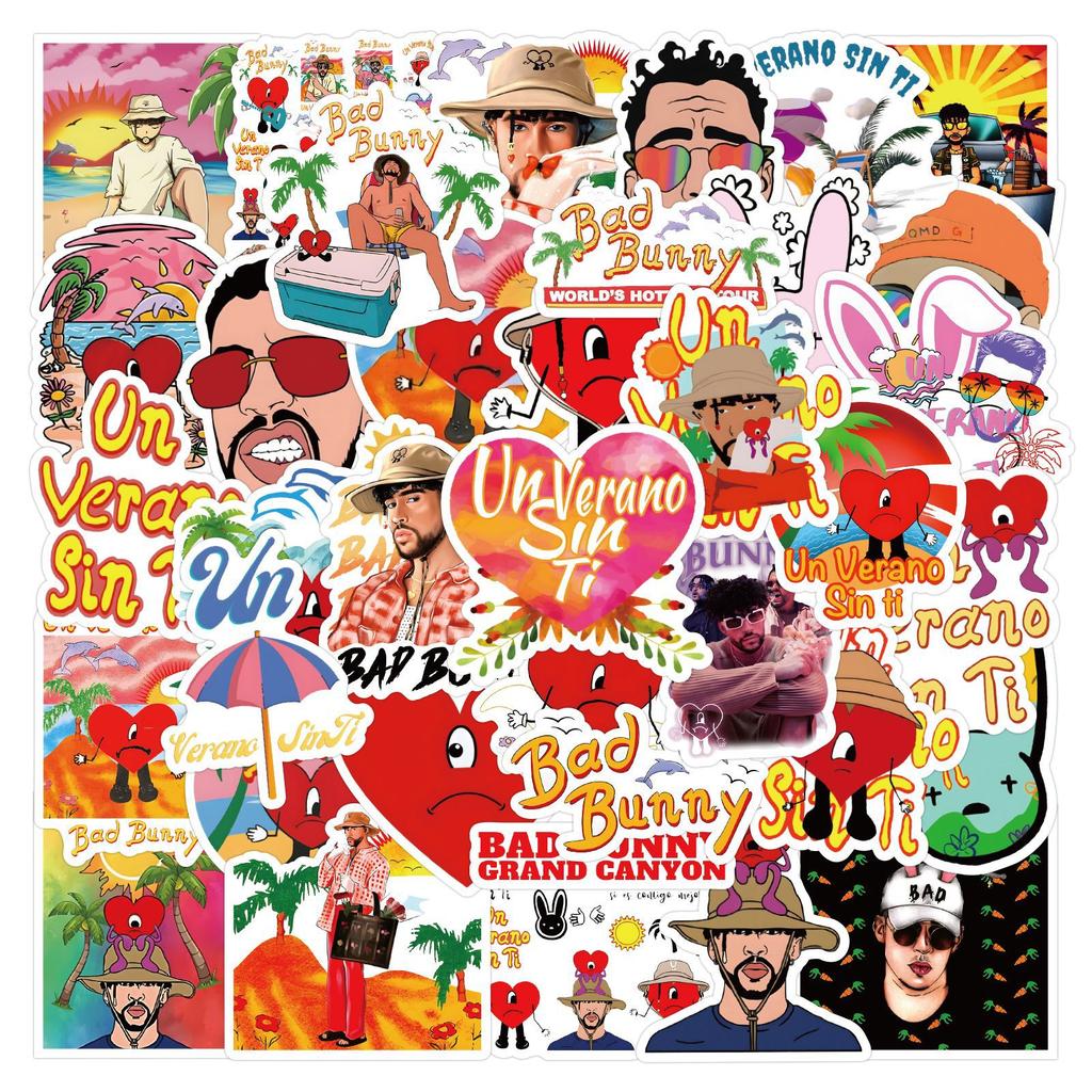 50 New Bad Bunny Graffiti Stickers Decorate Electric Car Guitar Water Cup Waterproof Stickers