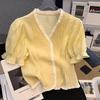 Women's Stylish Ruffle Contrast Color Design Button Up Shirt Elegant V Neck Sweet Chic Blouse Summer Female Casual Loose Tops