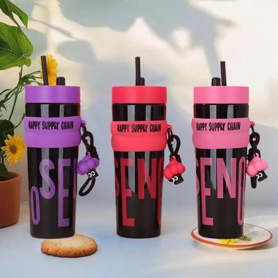New High Appearance Level Stainless Steel Thermos Cup Cute Double Drink Carrying Pot Outdoor Portable Cup with Straw
