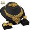 24K Dubai Gold Bridal Jewelry Set: Necklace, Bracelet, Earrings, Ring for African Women