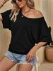 Elevate your style with this chic women's top, designed for fashion-forward comfort. Crafted from high-quality polyester, this piece features a solid pattern that makes it versatile for any occasion. The top showcases elegant batwing sleeves with a short length, adding a touch of sophistication to your wardrobe. The off-the-shoulder design, complemented by a classic round neckline, creates an effortlessly stylish look that's perfect for both casual outings and special events.