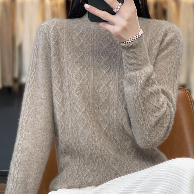 Half Turtleneck Women's Cardigan Autumn and Winter New Three-dimensional Twisted Flower Wool Sweater Versatile Warm Bottom Sweater Sweater