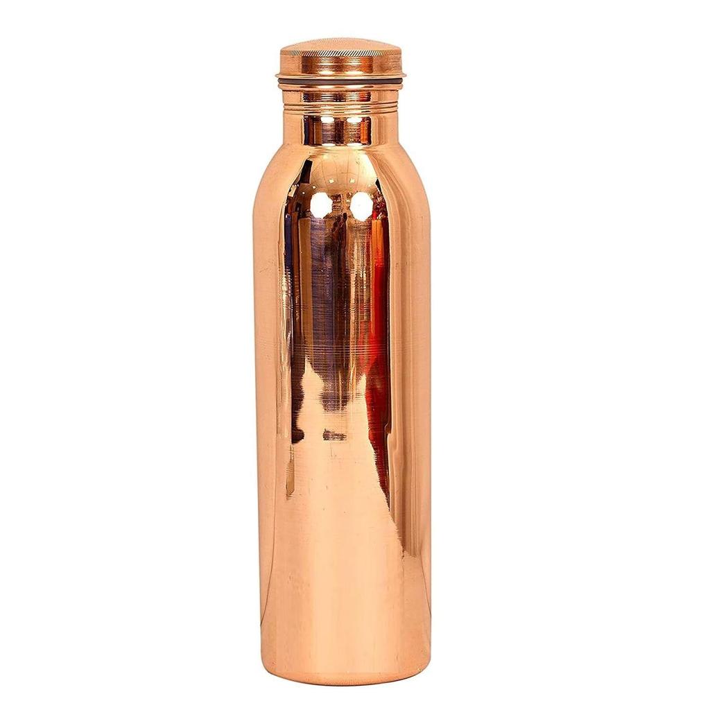 This 600 ML water bottle is crafted from pure copper, known for its Ayurvedic health benefits. Drinking water stored in