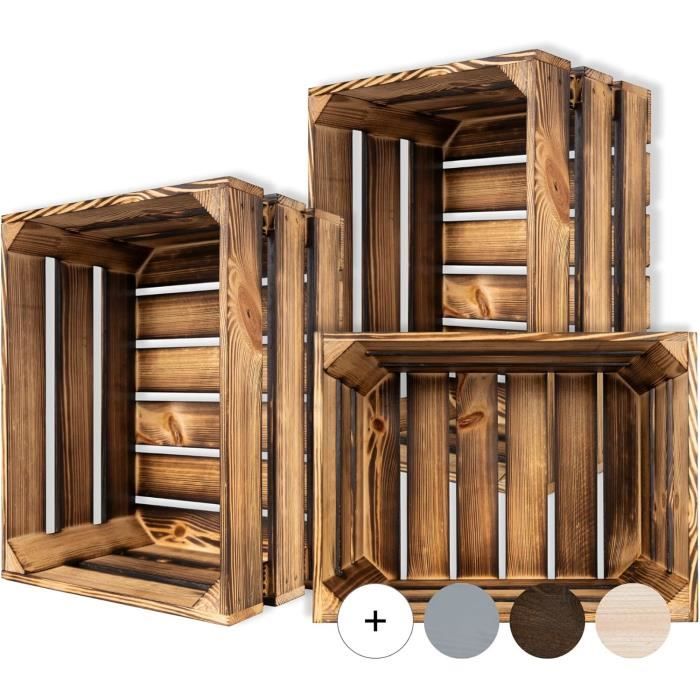 Creative Deco Set of 3 Torched Wooden Crate | 40 X 30 X 23 Cm | Wooden Storage Crate | Vintage Wooden Storage Crate