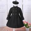 Children's Clothing Girls Coat Autumn Winter High Neck Tie Double-Breasted Jacket + Hat