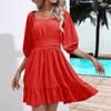 Summer Women Dresses Square Collar Bohemian RUFFLES Elastic Waist Above Knee Mini Dress Half Sleeves Pullover Mujer Vestidos