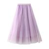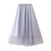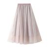 Qooth Women Shiny Fairy Tulle Gauze Skirt Elegant Sweet Elastic Waist Midi Mesh Skirt Ankle Length QT2201