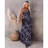 Summer Woman's Halter Dress Open Halter V-neck Elastic Waist Sexy Print Length Dress