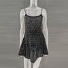 Party Rhinestone Semi Transparent Suspender Short Dress