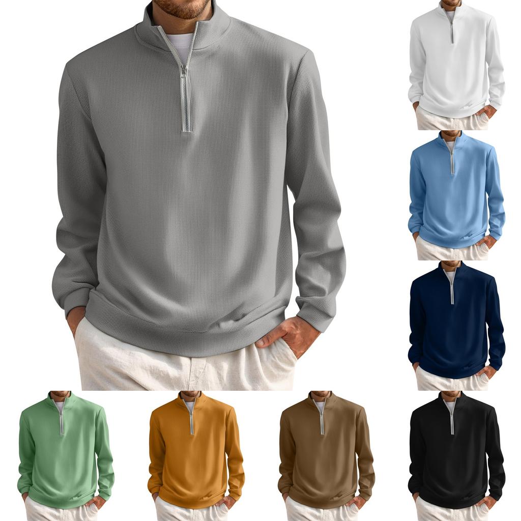 Men's Short Zip Pullover Turtleneck Long Sleeve Top