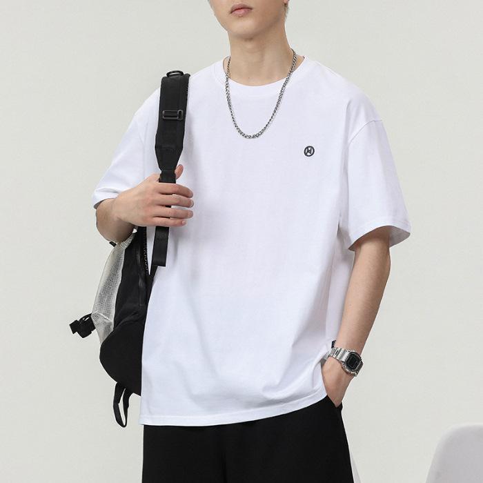 260g Heavy Japanese Loose Short-sleeved T-shirt for Men's Summer Pure Cotton Casual Embroidered T-shirt
