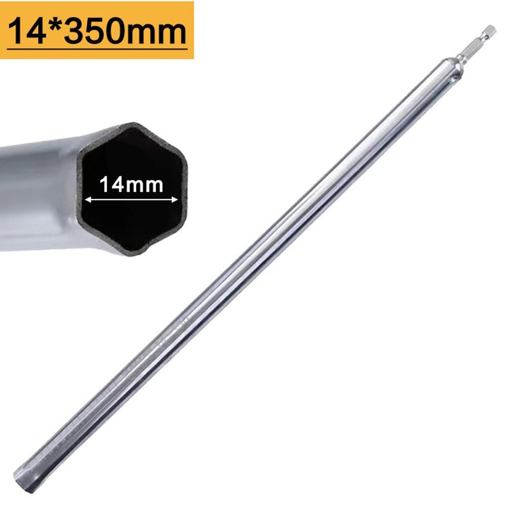 The hollow socket (14mm) allows seamless passage of long bolts and threaded rods during fastening, good for securing ducts, pipes, or ceiling fixtures without disassembly.