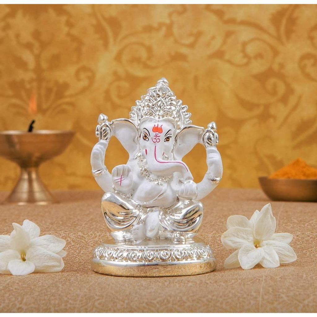Silver And White Ganesh Idol For Car Dashboard Small Ganesha Murti Ganpati Idol For Home Decor Puja Lord Ganesh Statue
