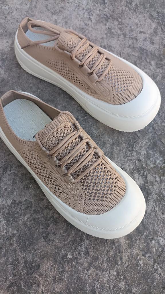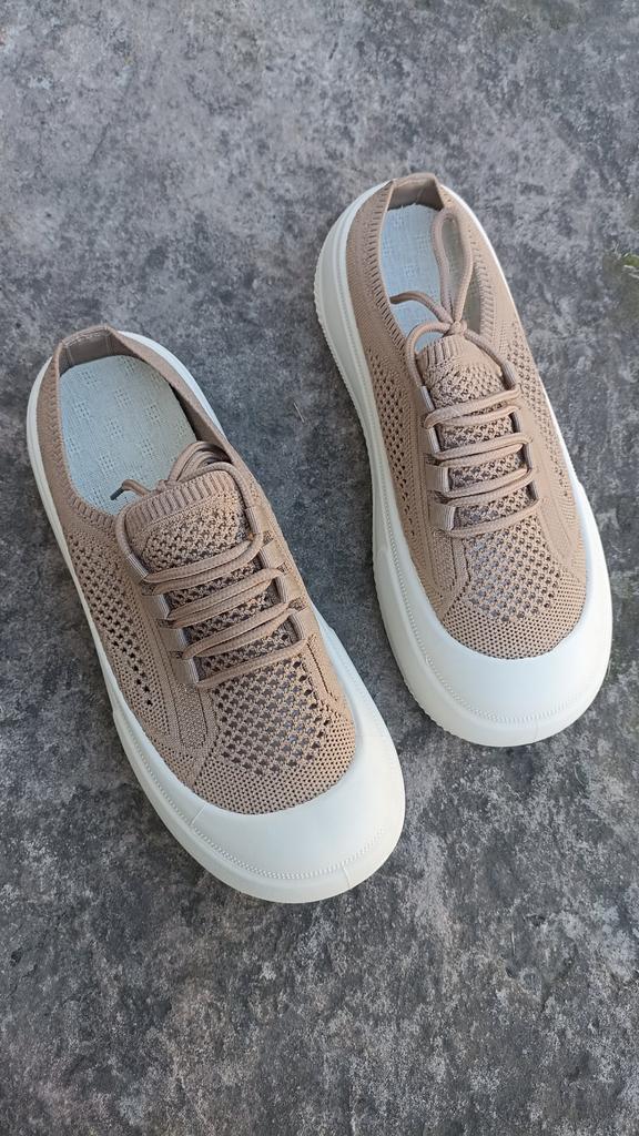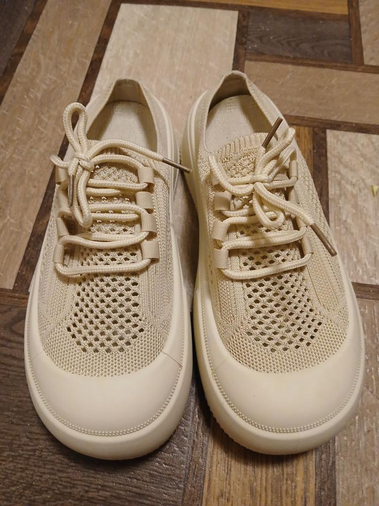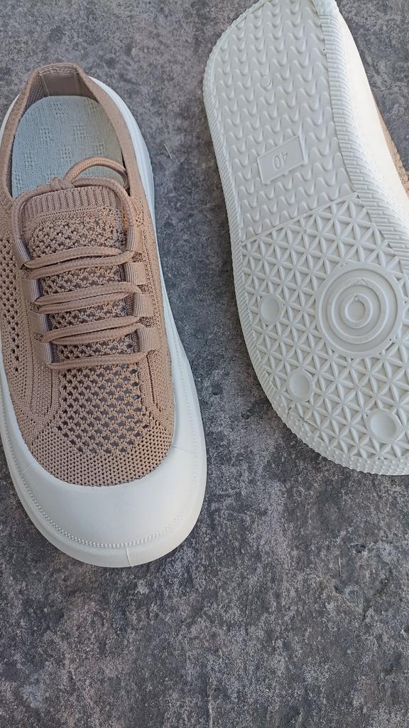 Women's casual shoes thick sole ♦️These shoes are special and beautiful with mesh and laces and they have a thick and comfortable sole. ♦️I chose size 37 and in beige color and received them exactly in the size and color I wanted. ♦️Available in several colors khaki, black beige- The shoes are very comfortable for everyday walking Sizes 35-41 can be ordered ♦️ The product came to me in protected delivery. Was the review helpful to you? Like and follow me for more reviews.