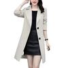 Women Fall Spring Coat Lapel Cardigan Double Buttons Trench Coat Solid Color Mid Length Pockets Business Jacket
