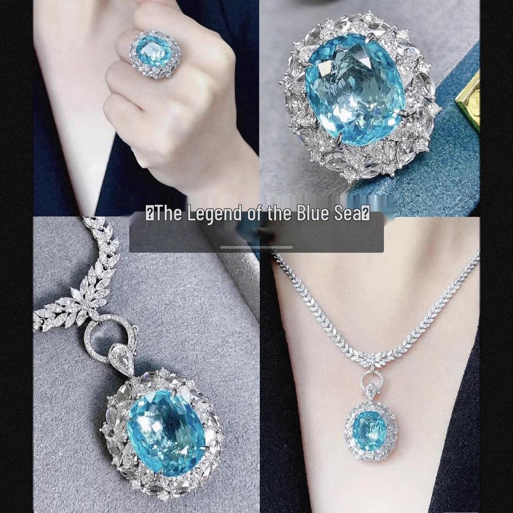 The Legend of the Blue Sea Aquamarine Pendant Necklace and Gem Ear Stud Set for Women