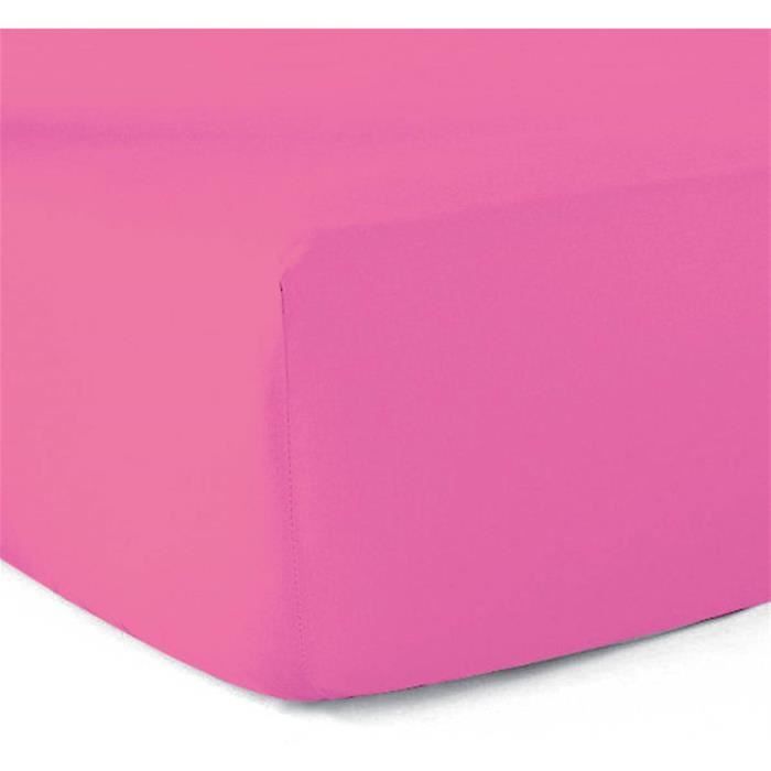 Drap housse - Coton - 140x190 cm - Fuchsia - 57 fils/cm2 - Bonnet 27 cm