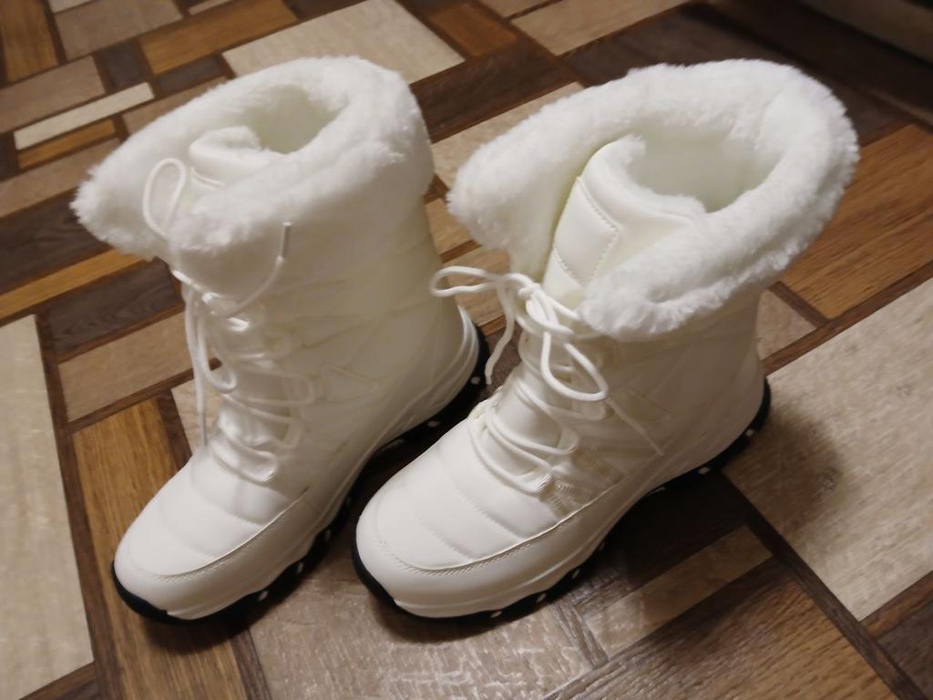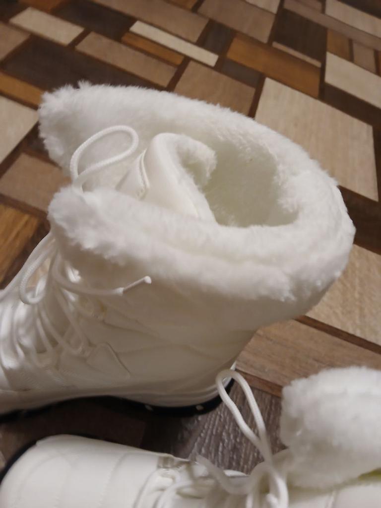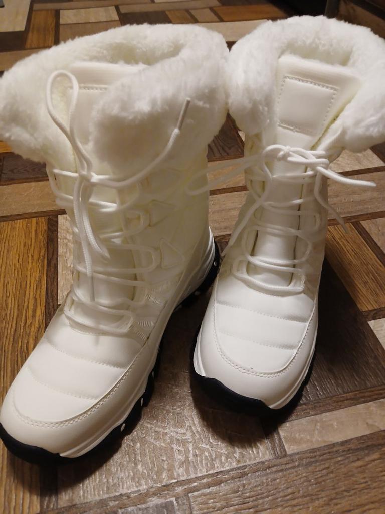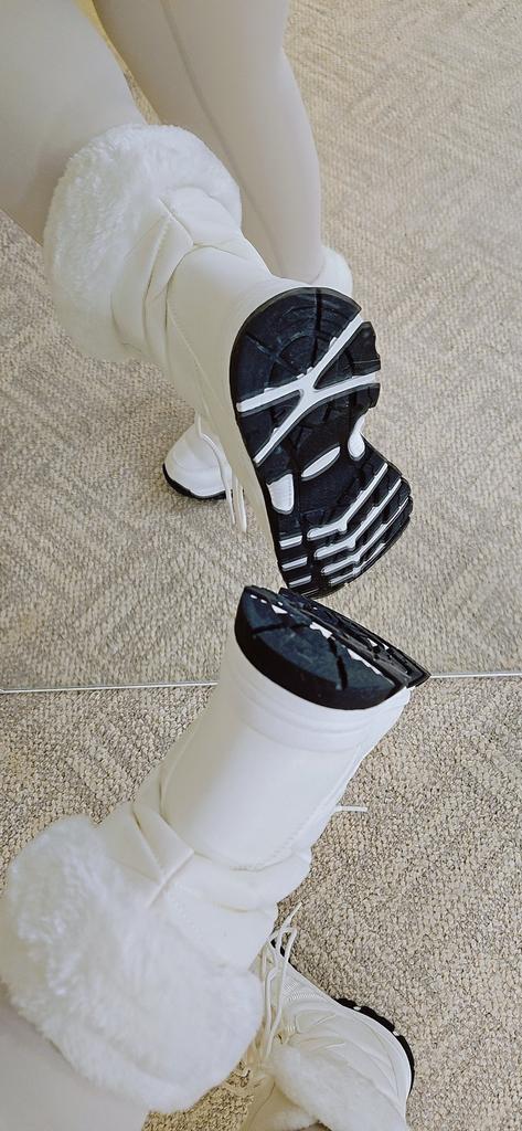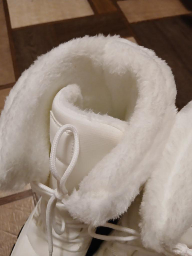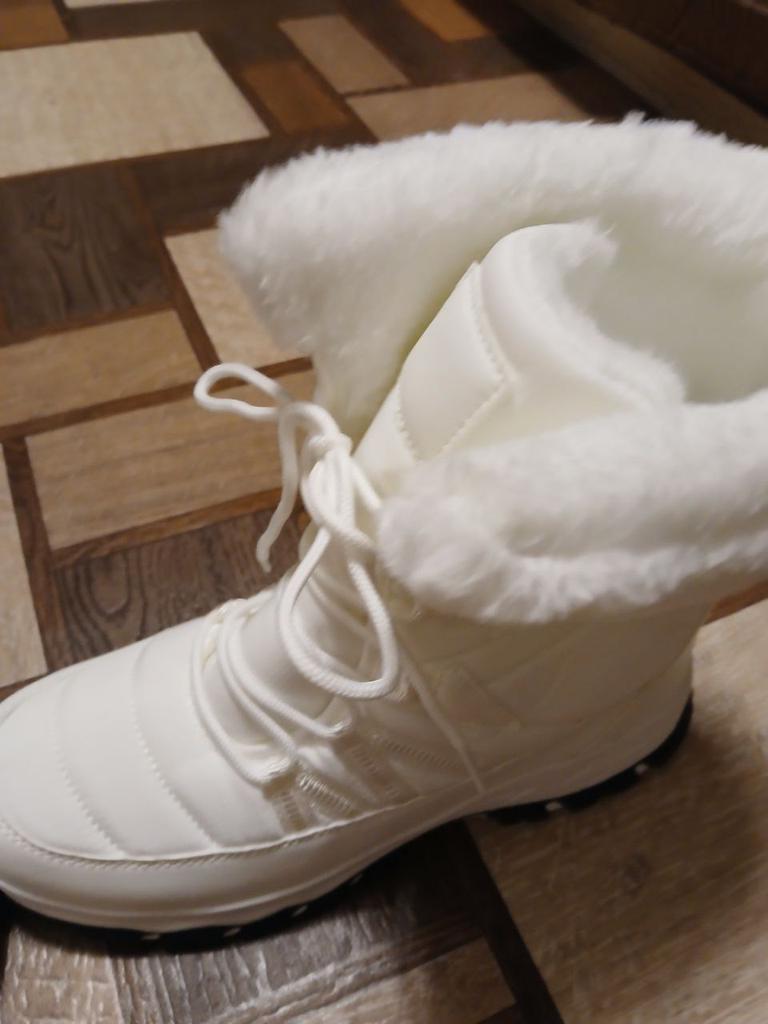 Wonderful boots from the verified store TUINANLE 👍 Snow-white, light as a snowflake))) ❄️ ❄️ ❄️ ❄️ ❄️ Modern technologies allow making winter shoes not only warm, but also lightweight and comfortable. Excellent ribbed sole. Neat stitching, no odor, no traces of glue. The part of the boot made of special fabric, waterproof like raincoat fabric (I showed everything in the video), thanks to the lacing, makes the boots fit right to the leg, while the foot inside does not slip and sits well. Inside is white fluffy fur, the insole is covered with thin fur.. For size 23.5, I chose size 38 so it wouldn't be too tight and my foot could breathe a little. Just perfect. I highly recommend, for winter, for snow, wonderful boots🤍❄️🤍