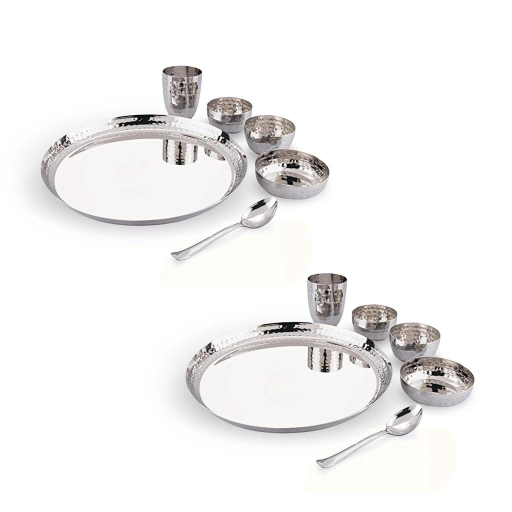 Heavy Gauge Stainless Steel Dinner Set | Hand Hammered Steel Thali Set | Stainless Steel Dinner Set for Kitchen | Thali Set for Dinner