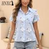 HNXC Women's Fashion Casual Short Sleeve POLO Neck Blouses & Shirts
