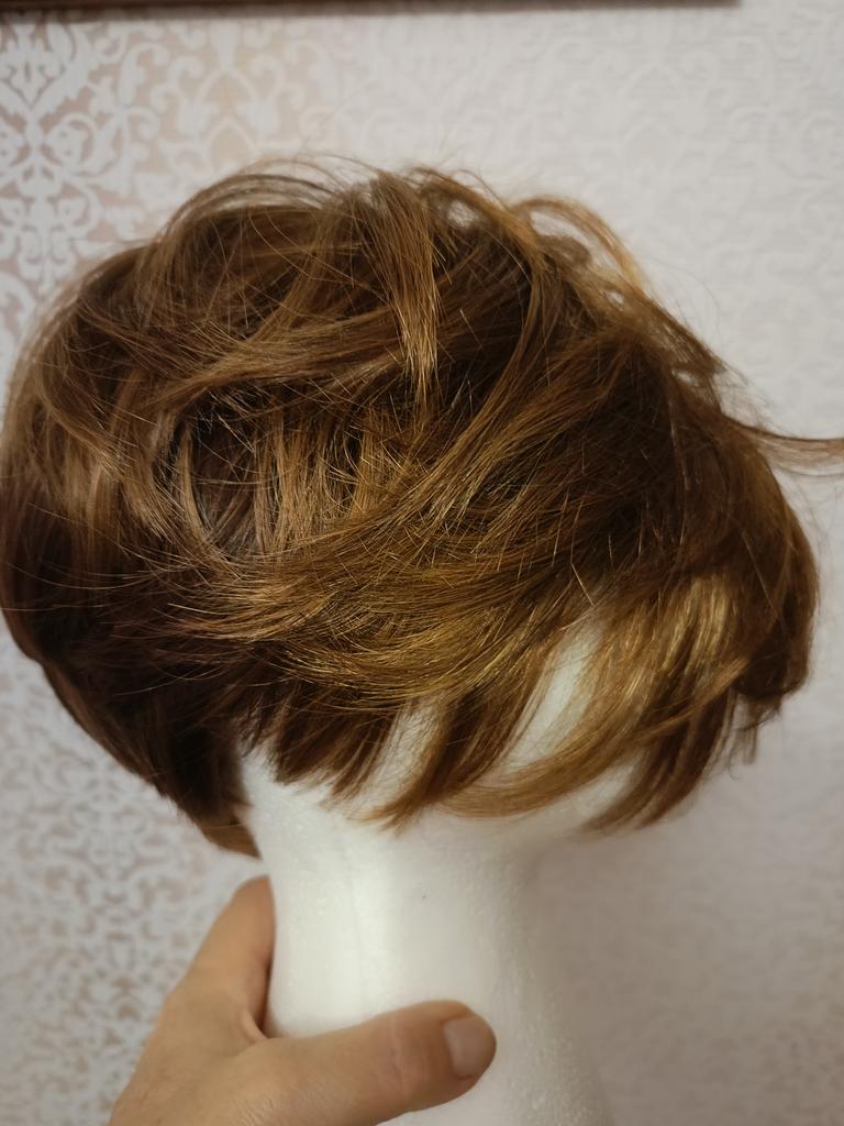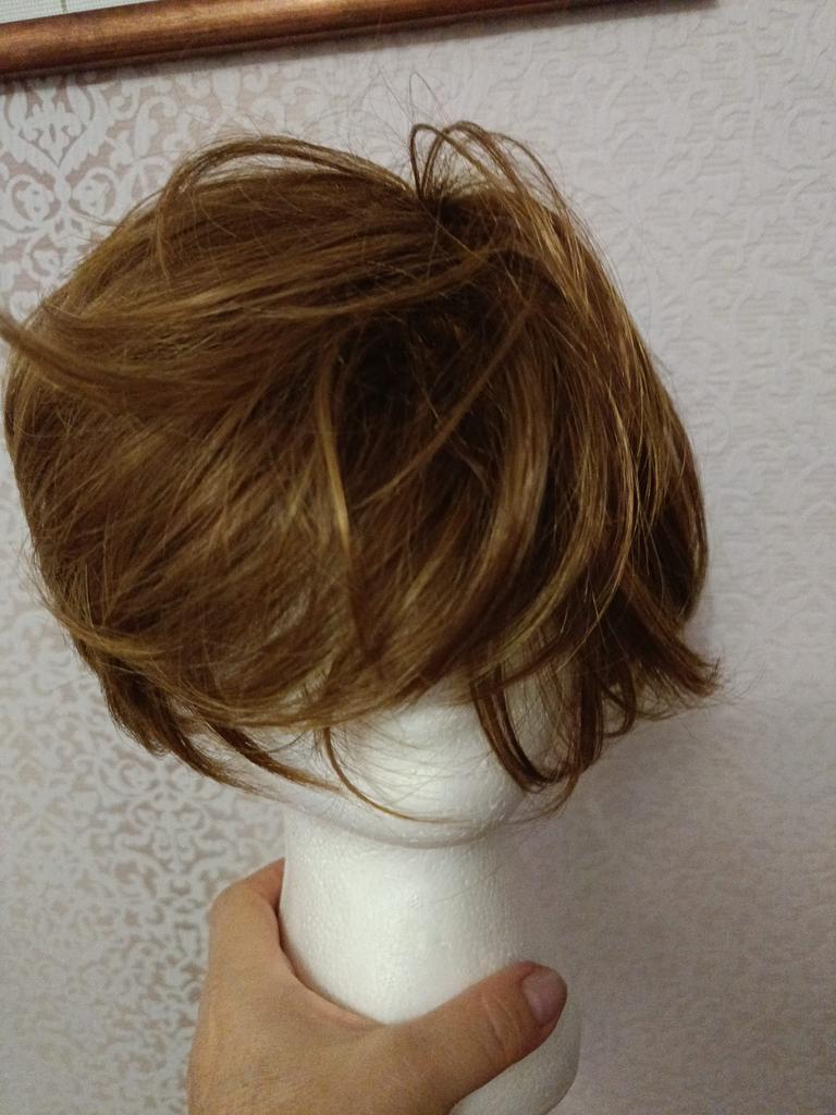 It's a pity that the photo and description do not match the product. The bangs are very long, cover the eyes, pushing the wig back, naturally it either sticks out or the back part presses against the shoulders. I don't even mention the curls, they are not there. And the color is not the one I ordered.